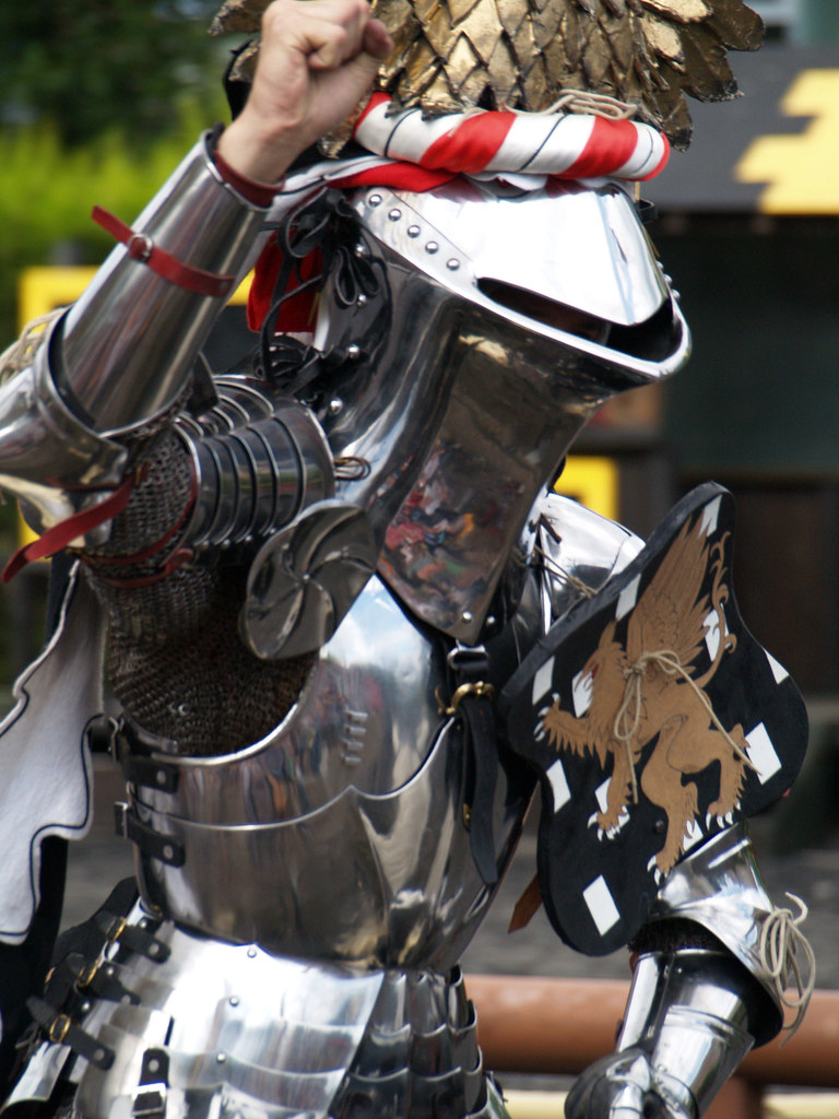 Knights only wore the Frog-mouth helmet in tournaments, not in real battles. They often needed help putting it on and taking it off because it was so big and heavy!